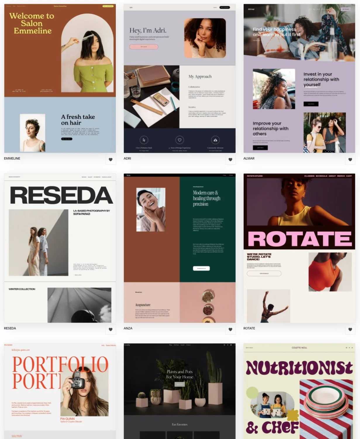 Squarespace bietet eine Menge Templates an, die du nutzen kannst, wenn du deine Website erstellst. Diese haben, wie eben schon erwähnt, alle dieselben Funktionen. Was das angeht, bist du also völlig frei in deiner Auswahl und kannst das passende Design nehmen.
